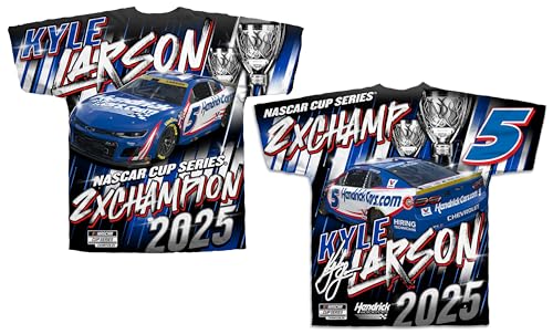 Kyle Larson #5 NASCAR 2025 Sublimated Total Champ Print Shirt - Large is backordered and will ship as soon as it is back in stock.