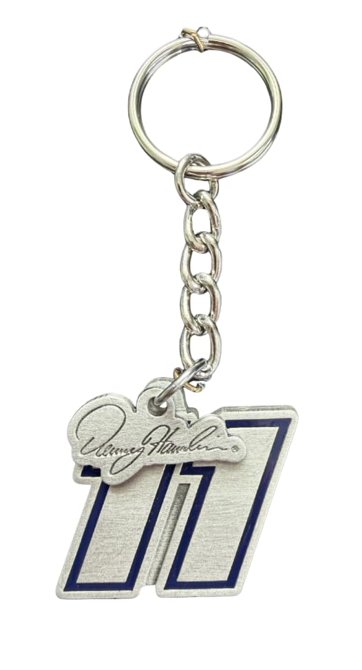 Denny Hamlin #11 Pewter Blue Outlined Number Signature Hang Tag Keychain