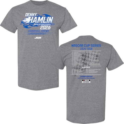 Denny Hamlin NASCAR 2026 Schedule T-Shirt - Automotive Racing Apparel - Denny Hamlin / Medium is backordered and will ship as soon as it is back in stock.